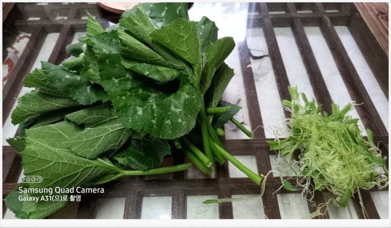 살~살~ 잡아당기면 딸려 나오는 호박잎의 근육질